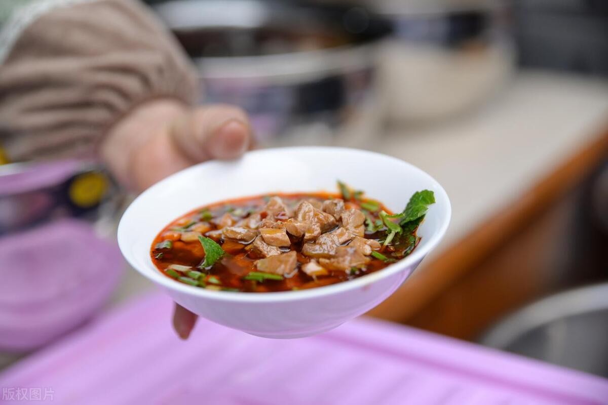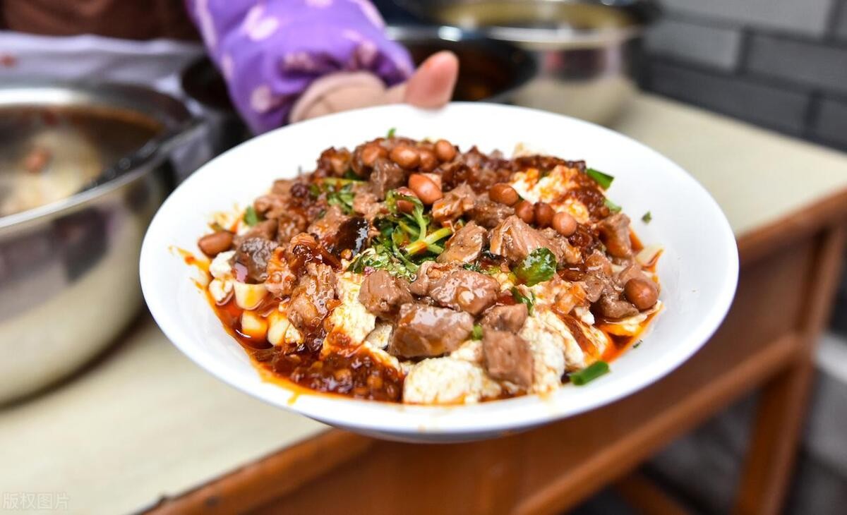 遵义豆花面的每一口都是一场火辣的味蕾盛宴,滑嫩的豆花如云朵般轻盈的被浸在浓郁的红油中,散发出诱人的香气。
