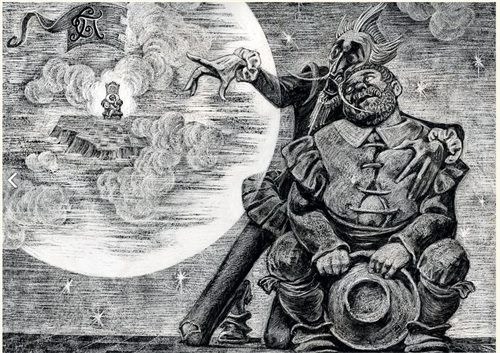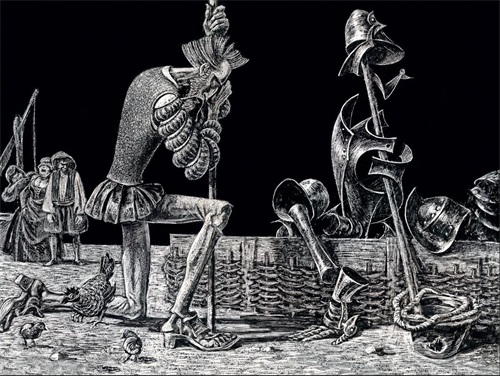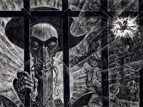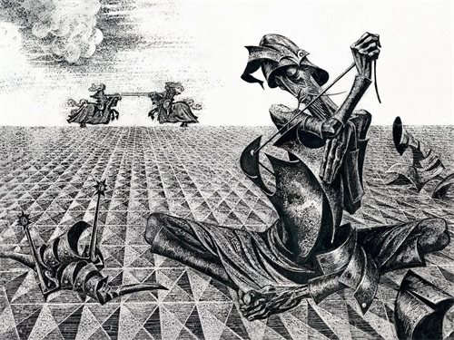 最后,我们看一下布罗茨基为《堂吉诃德》绘制的带着黑暗气质的插图,确实让人感到很震撼: