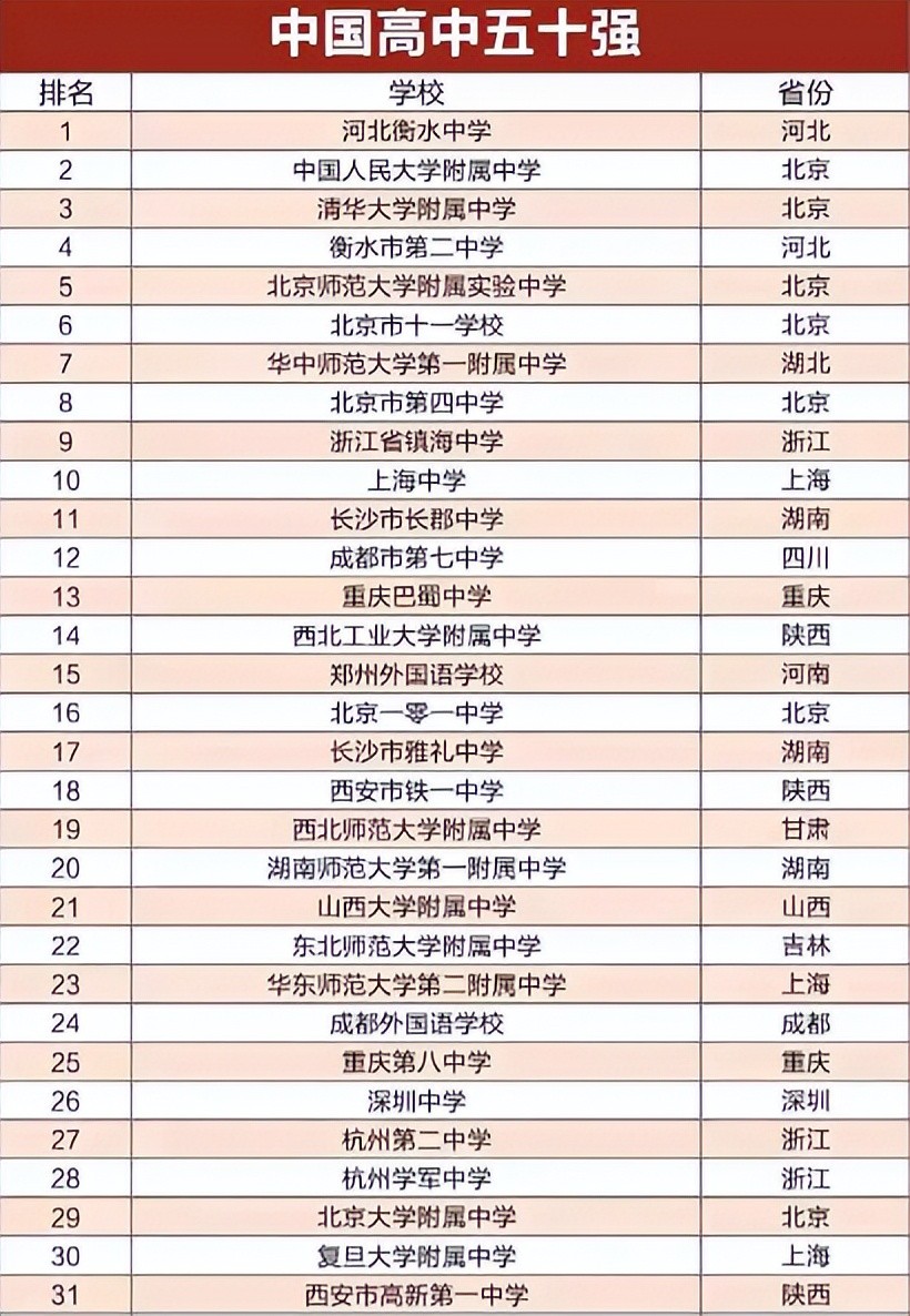 全国47所高中排名!第一名居然是河北衡水高中,清华附中排第三?