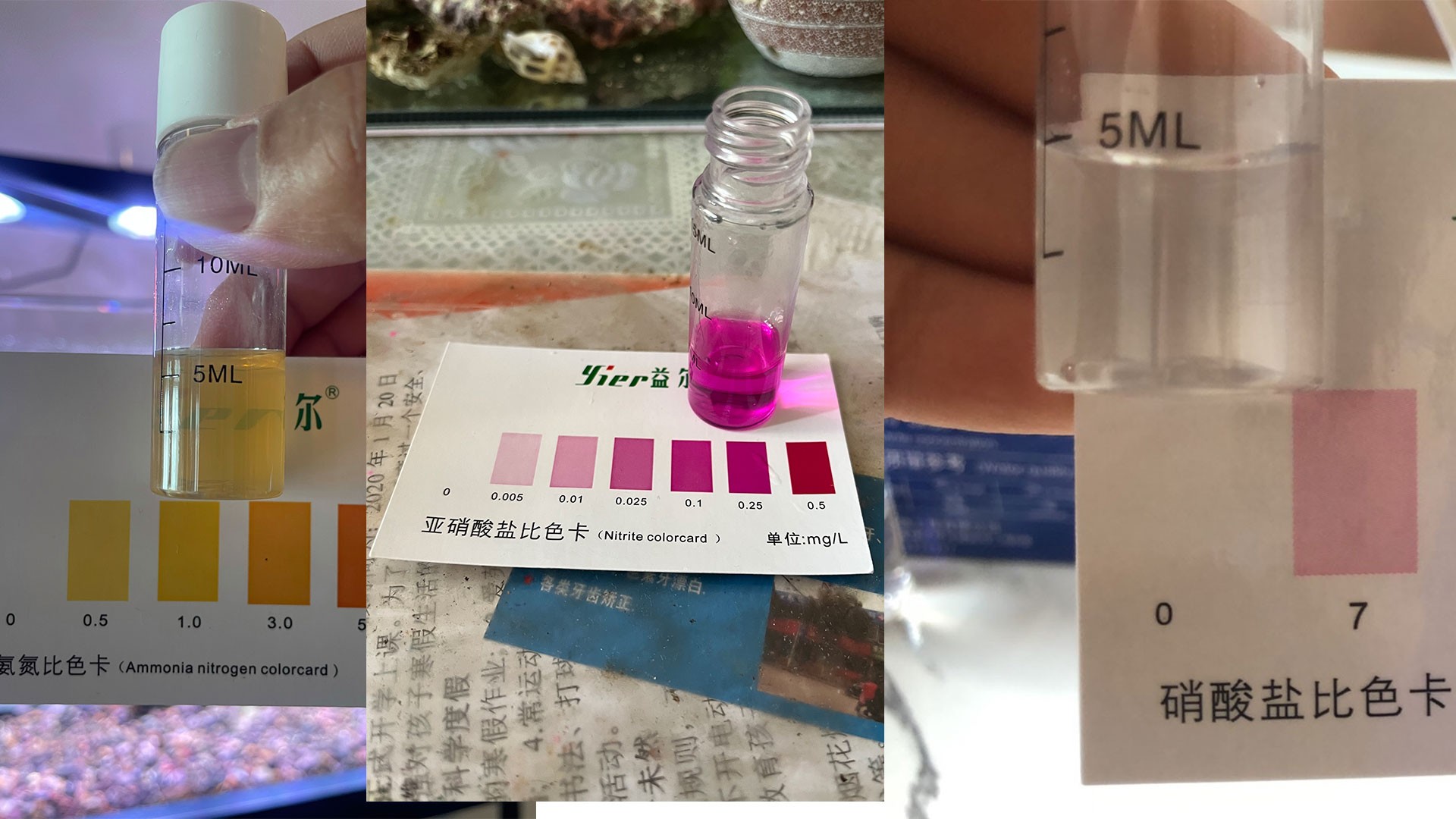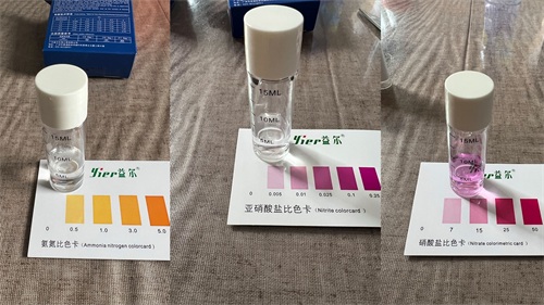 2、氨氮含量高,亚硝酸盐和硝酸盐为0,此时也表明硝化细菌还没建立,只是鱼的各种生理活动已经开始产生氨氮了。