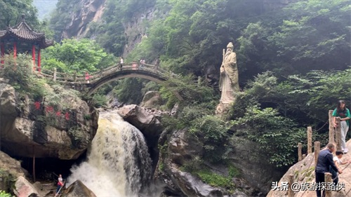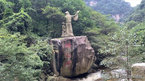 接下来是“太公石船”,这里有一座太公像,旁边还有一座瀑布和一座刻着“仙踪”的石头观景台。周围有一圈栈道,不管在哪个位置拍照感觉都非常不错。喜欢拍照的小伙伴,一定不要错过。
