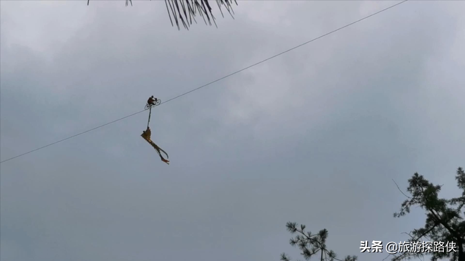 在下到海拔1000多米时,有一溜滑道,如果实在走不动了,可以从这里滑下去,不过要收费30。除了这些之外,还有一些高空飞车表演,看起来很惊险刺激。