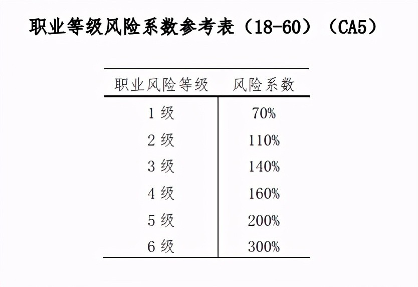 从该职业风险系数参考表可以看出,职业风险等级越高,风险系数越大。