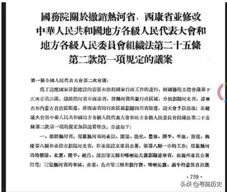 一个版本是热河省自己主动要求撤销的,那时的省委领导同志认为热河省太穷,人口少,才500多万,所以给中央打报告,要求撤销热河省。