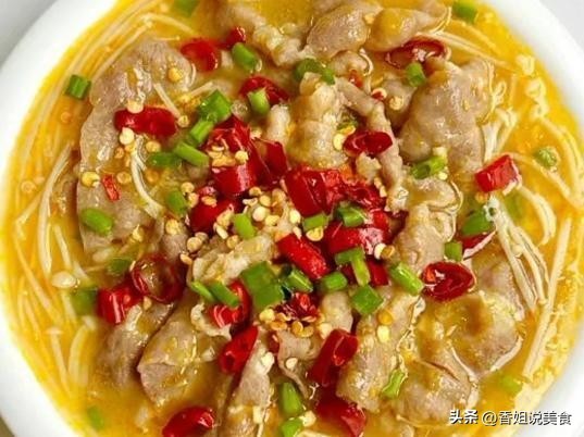 准备食材:肥牛卷,金针菇,蒜末,葱花,干辣椒,酸汤肥牛酱。