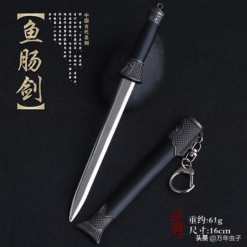 鱼肠剑是一把短短的匕首,天下第一相剑大师薛烛在相这把剑的时候认为这是一把弑君杀父的剑,之后果然被专诸拿去刺杀王僚了,面对王僚三层狻猊铠甲,层层穿透,剑身虽段,然而杀气未断,狠狠插入王僚心脏,这份勇气当称之为绝!故又名勇绝之剑。