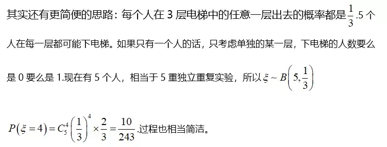 上面的错解实际上是认为这个人在三层电梯中的每一次下电梯是相互独立