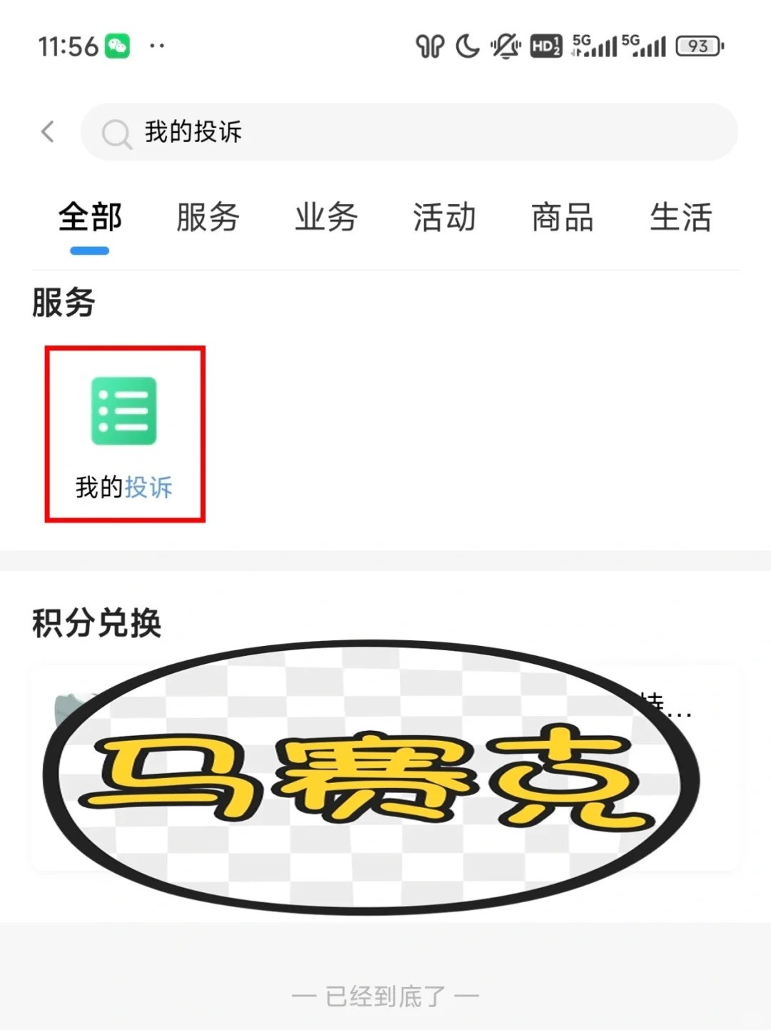 ①在shou页搜索栏搜“我的投诉”——找到【我的投诉】