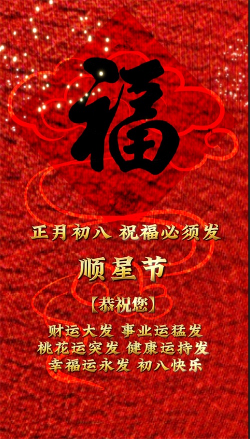 正月初八,恭祝您:发财,发家,发福,发达,八方来福,八面威风,八面玲珑,八仙过海!发发发!