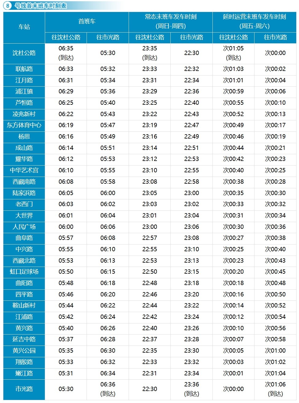 各位小伙伴请注意!随着昨天(11月30日)首班车起,17号线西延伸东方绿舟站(不含)至西岑站开通,上海地铁全网首末班车时刻表也随之更新。请大家收藏~详见↓
