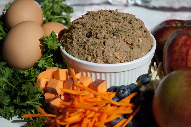 配方2:牛肉200克、米饭/糙米200克、鸡蛋2个、胡萝卜1根、青菜100克、酸奶适量(补充钙)、南瓜粉适量(有益的食物)、骨粉适量(矿物来源)、鱼肝油适量(维生素来源)、海藻粉适量(钙来源)。