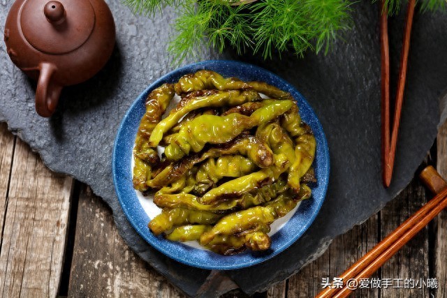 制法:(1)青椒洗净去蒂及籽,保持形状完整。取一大碗,放入料酒、白糖、酱油、红醋及水淀粉拌匀成糖醋味汁。(2)炒锅上旺火,注入植物油烧热,放入青椒快速翻炒,并用炒勺将青椒压扁继续翻炒,至青椒表皮密布斑点时,倒入糖醋汁拌和均匀,装入盘中。