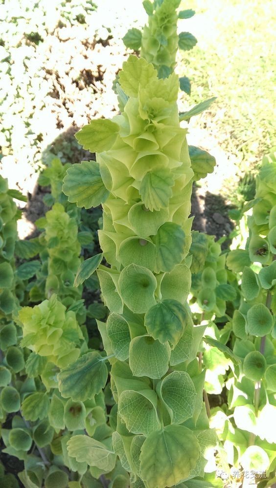 这个绿色的有趣的花很可爱,也叫爱尔兰风铃,花型很像贝壳,其实绿色的部份不是花,而是花萼变大,成为杯状,内部小小的白色部份才是花。