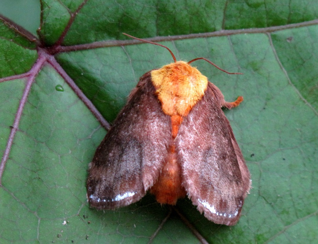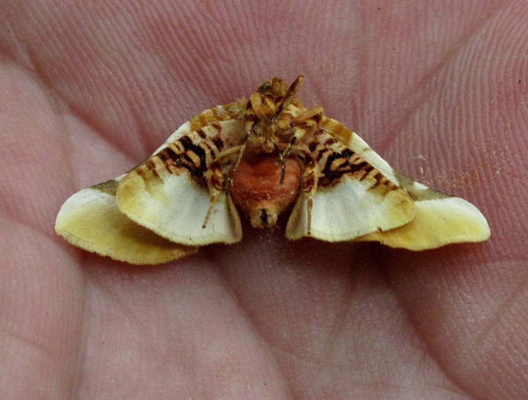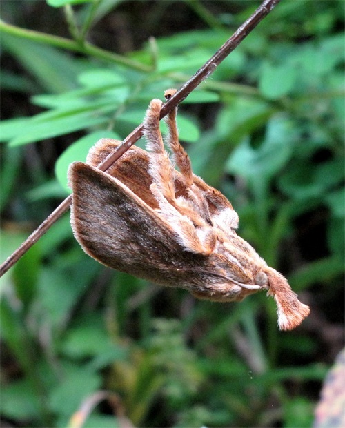 用软件识别结果是种刺蛾科的种类,感觉其个体的大小超越了刺蛾科,我暂且将其归入到枯叶蛾的类别,这个科的种类都与枯叶干上了。