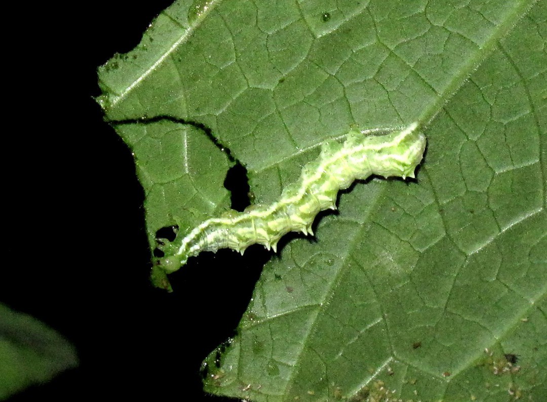 大型尺蛾幼虫,只吃野鸦椿的叶片,因为尺蛾科幼虫的腹足退化只剩下臀足,行进时非常有个性,因此又叫“造桥虫”