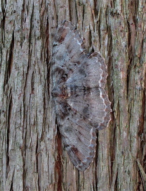大斑掌尺蛾(尺蛾科),它白天停息在大树干上,翅膀的图案与树皮融为一体,一种很巧妙的伪装效果,显然它们是很清楚自己身体的图案,然后找到合适的地方隐身起来,可谓天衣无缝,许多蛾子都有这种隐身的绝技。
