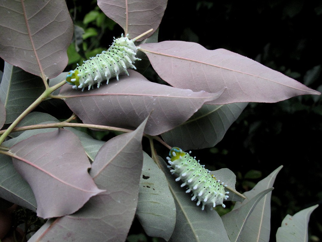樗蚕蛾的老熟幼虫(大蚕蛾科),大蚕蛾科的蛾子都是大型观赏性的种类,樗蚕吐丝作茧,这种蚕丝也可被利用作为纺织的原料,幼虫的食性相对较杂,比如臭椿、香樟、樗叶花椒等,这是在臭辣树上见到的樗蚕,幼虫体表有白色的蜡粉,是个很有识别度的种类。
