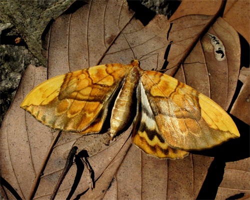 褐缺口尺蛾(尺蛾科),如此自信地在阳光下展示自己的身体,可能是它认为自己与枯叶没有区别,没有天敌会感兴趣的。