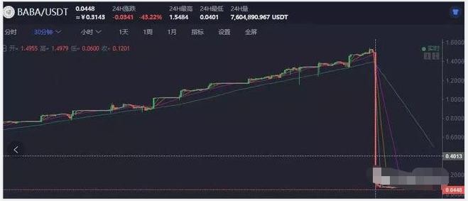 最终在一段时间之后,BABA币进行了收割,短短几分钟内暴跌了90%以上,从1.5u跌到了0.06u,暴跌了25倍。可谓是割的壮烈,在冬至吃了一锅带血的韭菜馅饺子。