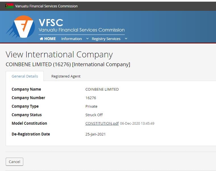 此前,满币公司注册地为瓦努阿图,但2021年1月25日到期后便没有任何其他注册信息,所以,目前公司状态为无照经营?