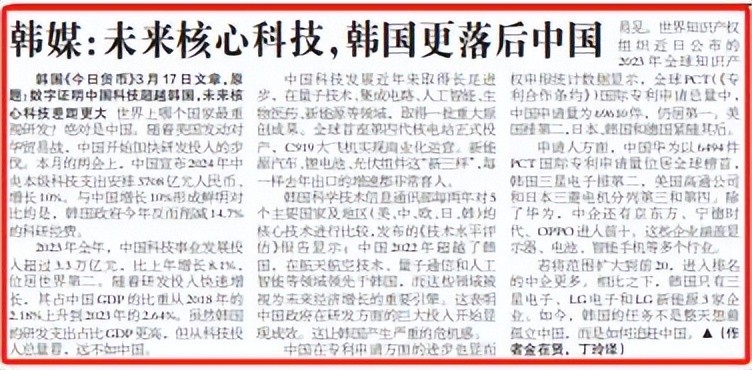 文章题目叫做《数字证明中国科技超越韩国,未来核心科技差距更大》,这篇文章主要说明了在中国与韩国做比之下,韩国在各方面落后的地方,首先就是中国的科研消耗,大家要明确一点,那就是想要国家在未来能够有足够高的地位,科技是绝对不能落下的。