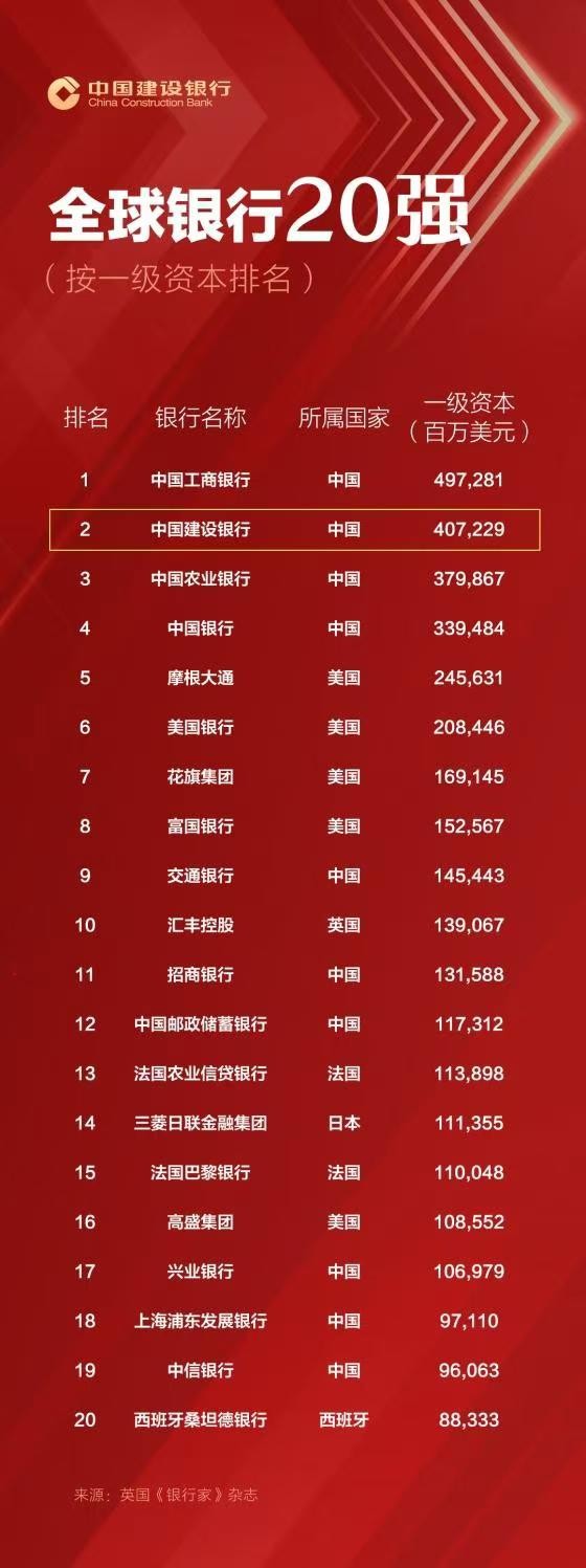 多个国家的银行出现在前20强的榜单中,可以想象前10强的激烈竞争了。
