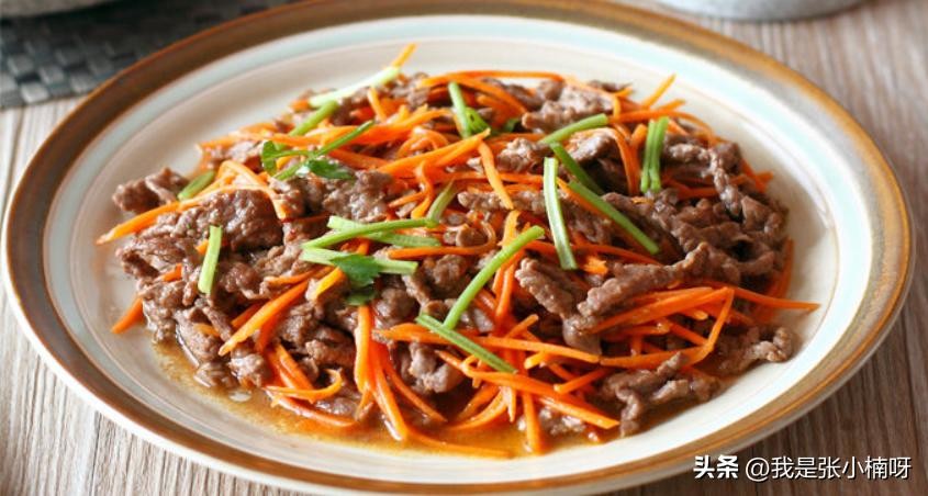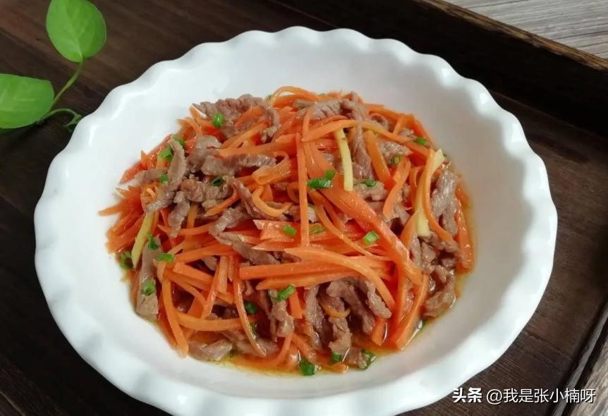 一、胡萝卜丝炒牛肉是色香味俱全的家常菜,胡萝卜中的β-胡萝卜素有助于增强免疫力,而牛肉则提供了丰富的蛋白质,有助于身体的修复与恢复。