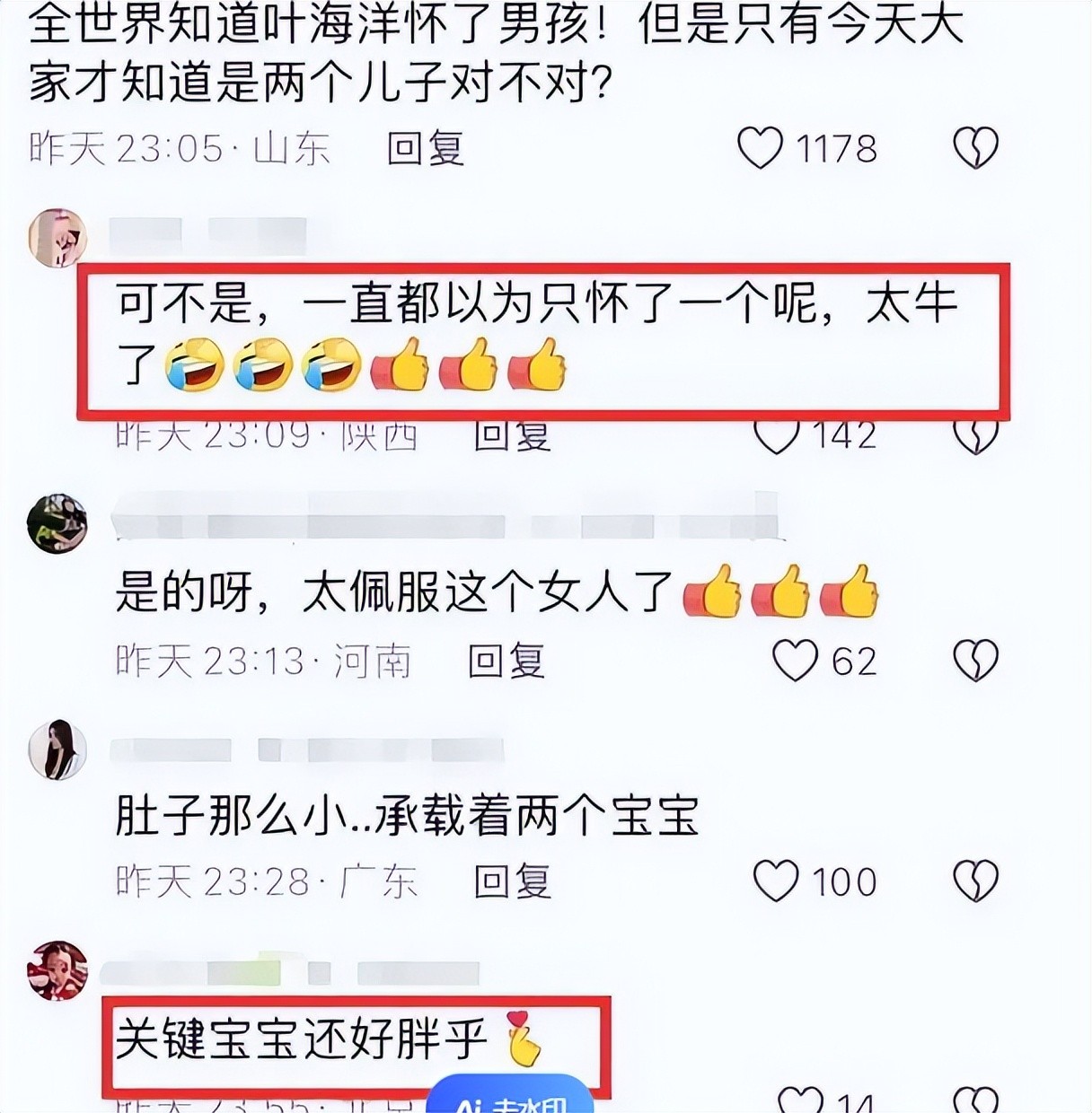 事实上,在叶海洋宣布怀孕后,就有不少网友提出质疑。他们认为,叶海洋怀三胎时并不显怀,腹部并没有明显隆起。