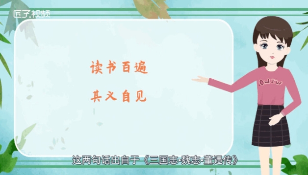 读书百遍也有人把它叫做书读百遍,意思是一样的,都是说要深入了解书中的知识,最好反复去阅读文章,这样每一次都会有新的理解和体会,不等他人讲解就能自己读出书中的含义。