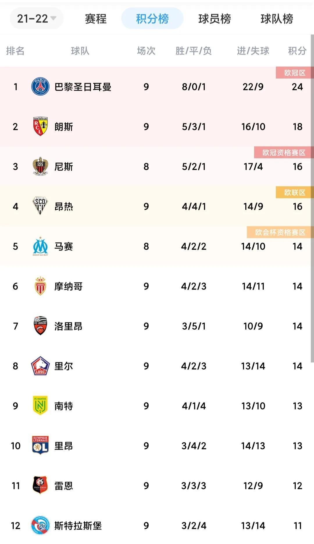看完法甲积分榜相信大家第一反应应该都是梅西第一座法甲冠军稳了!确实巴黎圣日耳曼在法甲的地位很难有其他球队可以撼动,刚踢9轮,巴黎已经拉开第二名6分,可以说是稳得一批。很难理解上个赛季大巴黎是怎么被里尔抢走的法甲冠军!这个赛季的里尔已经被巴黎拉开10分的差距。梅西表示说我躺冠?那我就躺给你看。我想躺冠都不用上场!梅老板的重心早已不在法甲联赛,代领巴黎夺得欧冠冠军才是梅老板应该做的事情!