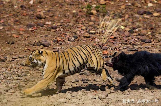 老虎生性谨慎,在懒熊身上体现得更加明显。18年在塔多巴保护区,有一只老虎试图捕杀懒熊母子,结果被懒熊撵跑,这个过程被摄影师记录了下来。懒熊喜欢“虚张声势”的御敌策略,遇到危险时会让自己头毛变得蓬松起来,大口张嘴亮出尖爪,并发出响亮的吼叫声,使自己看起来更加凶猛,以此吓跑攻击者。老虎有能力捕食懒熊,但是非常困难而且风险高,遇到强烈反抗就会选择边打边跑。不过,前提也是在老虎食物充足而且并不饿的情况下,否则懒熊也会成为老虎的美食。