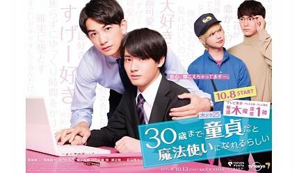 《如果30岁还是处男,似乎就能成为魔法师》为2020年10月9日起东京电视台每周四25时播出,也是深夜剧的经典!本剧被粉丝昵称「樱桃魔法」,是继《大叔之爱》后再度爆红的BL题材剧,描述母胎单身的主角「安达」在30岁生日这天,发现自己有了「读心」的奇妙能力,更发现公司的菁英同事黑泽优一似乎喜欢自己。剧中安达与黑泽之间的互动甜而不腻,让观众完全陶醉于其中,不少人看完都表示产生严重的「樱桃魔法LOSS」!