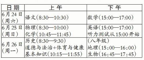 福建省的中考科目都是省里统一命题。没有固定的考试时间,一般都安排在六月第三周周末。