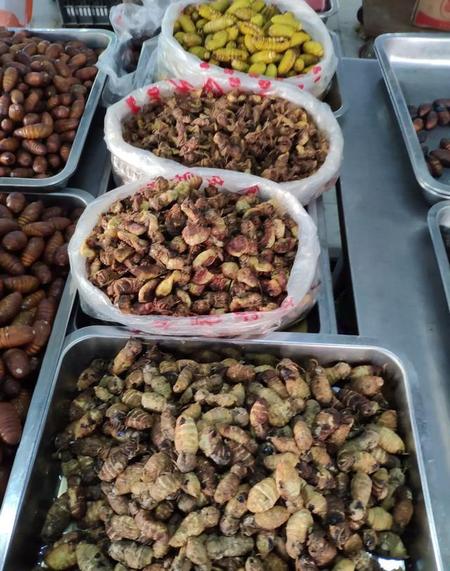 目前为止我知道的可养殖食用的虫子有:蚕蛹,蝉,蜂蛹,蝗虫,蝎子,蜈蚣(主要药用)