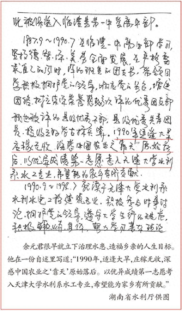 25年时间,洞庭湖3471公里一线防洪大堤、226个大小堤垸,都留下了余元君的脚印。每到基层调研,余元君从不急于听汇报、看材料,而是带上盒饭、租一条小机动船去实地勘察,在掌握大量一手数据后,才坐下来汇总意见、部署工作……余元君成了“行走的洞庭湖水利百科全书”,凭一支笔、一页纸,就能勾勒出洞庭湖不同区域的水系图、工程分布图。他指导的烂泥湖垸羊角村险段除险加固工程防渗墙方案,让总投资减少近1500万元,安全也有保障。他参与和主持过500多场次治湖工程技术方案审查,科学性、合理性全部“过得硬”。他着手开发“数字洞庭”系统,希望用物联网技术助力构建江湖安澜、碧水清波新洞庭,去世前已写下厚厚一本构想笔记……