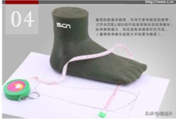 然后用尺子量出脚的最长及最宽的距离;最长的距离,即是将脚长,用于参考的尺码;