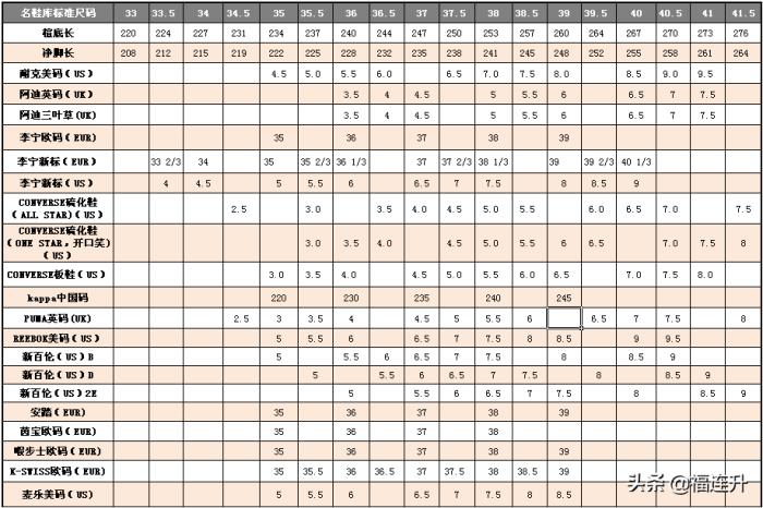 该尺码速查标识的是普通的美国尺码,根据款式和品牌多少存在一些差异。