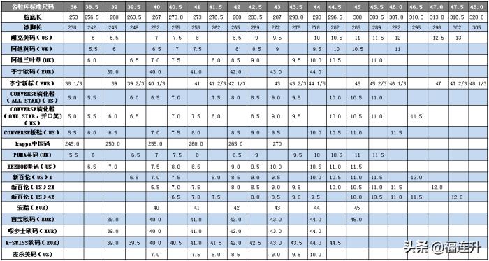 男生身高鞋码对照表,鞋码对照表及如何量脚长