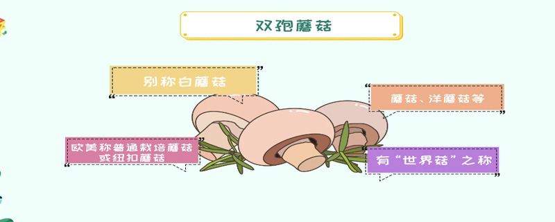 双孢蘑菇别称白蘑菇、蘑菇、洋蘑菇等,欧美各国生产经营者常称之为普通栽培蘑菇或纽扣蘑菇,为世界性栽培和消费的菇类,有“世界菇”之称。