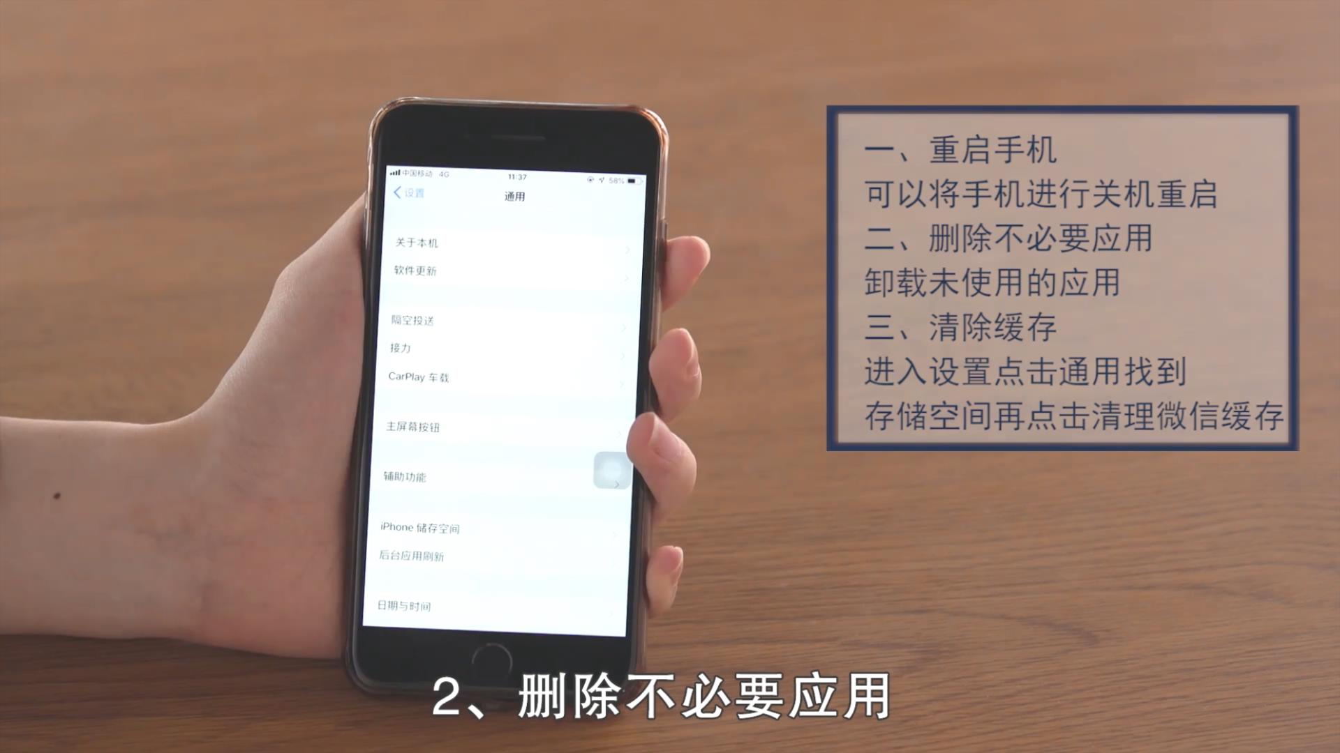 平时使用应用的时候会产生一定的数据缓存,这些缓存是可以删除的,例如微信可以进入设置点击通用,找到存储空间,再点击清理微信缓存,从而清理APP产生的垃圾。