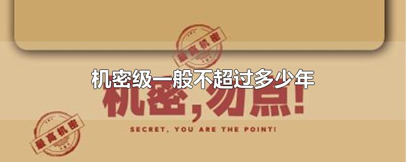 机密级一般不超过二十年。国家秘密的密级分为“绝密”、“机密”、“秘密”。对保密期限,修订草案规定:国家秘密的保密期限除另有规定外,绝密级不超过三十年,机密级不超过二十年,秘密级不超过十年。