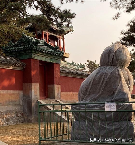 北方冬天对于文物的保护很逗,山门前的石狮子被穿上了“棉袄”。哈哈,这狮子长啥样呢?