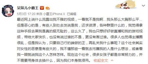 对于此事,呆妹儿小霸王通过微博是这么说的: