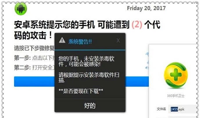 手机浏览器看网页,遭不停震动提示:手机被植入病毒,你该怎么办