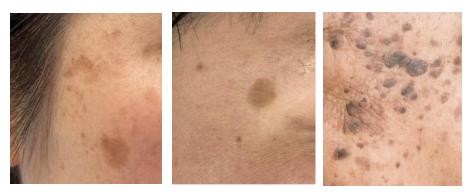 脂溢性角化病,俗称“老年斑”“老年疣”,是因角质形成细胞成熟迟缓所导致的皮肤疾病。好发于面部、躯干,早期表现为边界清楚的淡黄褐或深褐色、境界清楚的斑片;后期可逐渐扩大,略高出皮面,表面呈乳头瘤样,颜色可呈深褐色至黑色[1]。