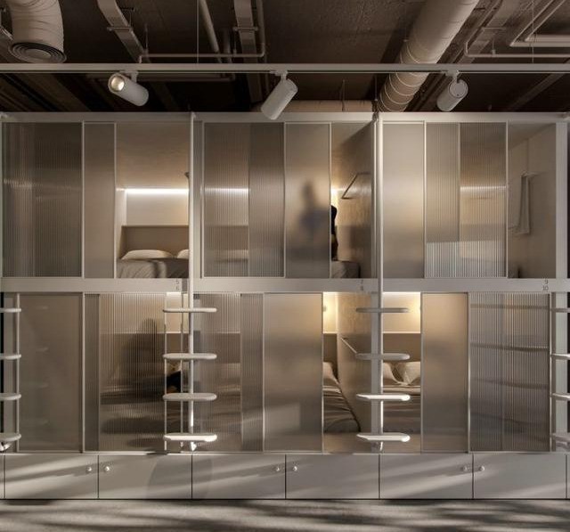 客房内可容纳一人以上的合宿床位都有阅读灯,小型的置物台(可以参照床头柜或壁龛、隔板等)、充电插座(usb插口)、挂钩,床位有隔板和窗帘,在尽可能舒适的同时隐私也得以保障。