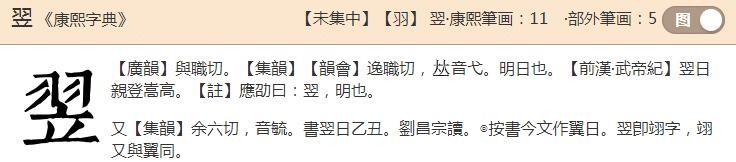 翌,汉语二级字,读作翌(yì),该文字在《路史节读》和《晏子春秋》等文献均有记载。