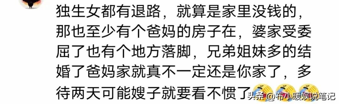 11、对,其实我觉得非独更加没有退路,回个娘家还要看嫂子或者弟媳的脸色