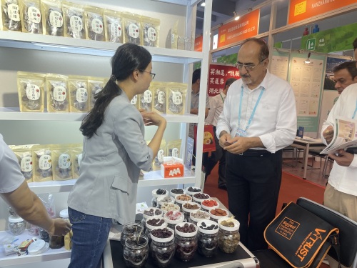 “very good!”一位巴基斯坦采购商在广东佳业食品有限公司(下称“广东佳业食品”)的潮汕蜜饯试吃摊前驻足,略带犹豫和好奇地拿起一块梅肉干放进嘴里,一边吃一边竖起大拇指,用不太标准的英文进行简单交流后,两人互换了名片。