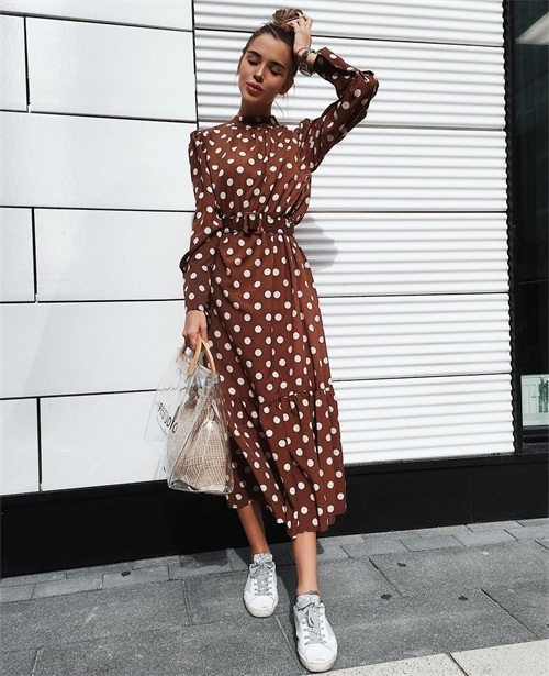 众所周知,茶歇裙最大的特点就是V字领口与收腰设计,甚至长款版型上还有一些开叉剪裁,想要成熟性感些就可以选择一些优雅气质的纯色搭配然后加上一件开衫或小外套装饰,绝对温柔又气质,想要学生党的青春甜美风可以考虑增加一些碎花小雏菊的图案设计。